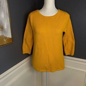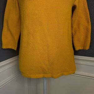 COS Textured Tight Knit Pullover Sweater in a marigold color which is a yellow color.