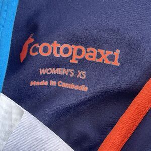 The COTOPAXI Mari Crop Top in size XS is a navy blue top designed for active training. It features a solid pattern, pullover closure, and is made from a polyester and spandex blend. The top has a built-in sports bra, making it ideal for gym workouts, running, walking, and other physical activities. The crop style and colorful theme make it suitable for casual wear or travel during any season.