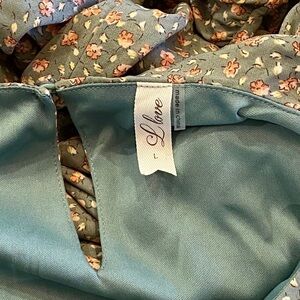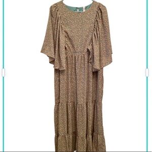 COTTAGE CORE New Dress L Love DressUp Prairie Sage Green Large. NWT Pretty sage green dress with blush pink / peach flowers. Underarm to underarm measures approx 16”. Back collar to hem measures approx 45” long. The dress appears to run tight for a size large.