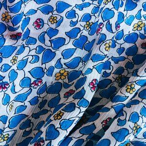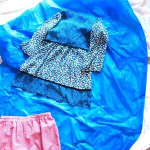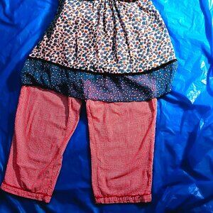 Cottagecore 100% COTTON seersucker red and white, ankle-length pants, and colorful print granny blouse, large, poly.