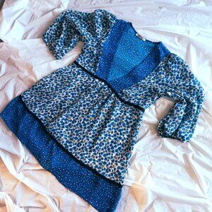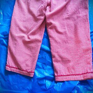 COTTAGECORE LOOSE SEERSUCKER RED & WHITE PANTS, SZ. 14 +PRINT GRANNY BLOUSE, LG
