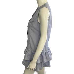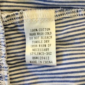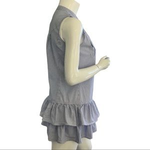 100% cotton. Two rows of ruffles at hem. Drop waist. Sleeveless. Front bottom closure.