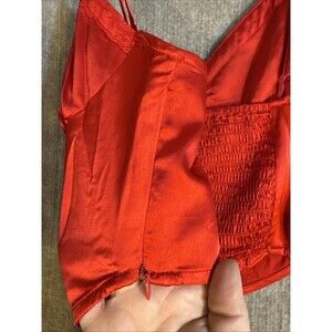 COTTON CANDY LA Red Satin Cropped Cami Size Small Smocked Stretch Back Side Zip
