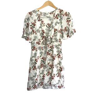 COTTON CANDY LA WOMENS WHITE FLORAL MINI DRESS SHORT SLEEVE TYE FRONT SIZE SMALL