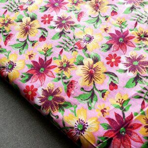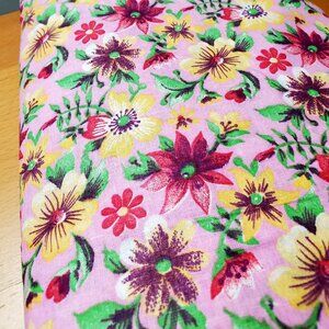COTTON FABRIC FLORAL PRINT NEW 132" x 37" PINK RED YELLOW GREEN SEWING QUILT