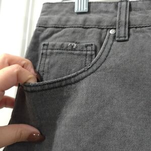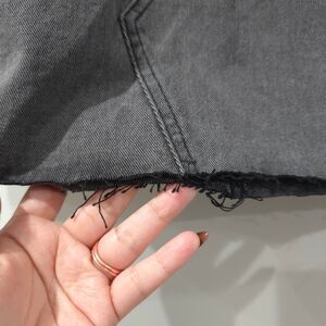 Stylish black washed denim mink skirt. Features a classic five-pocket design. Frayed hem for a trendy look. Can be worn casually or elevated for concerts or festivals.
