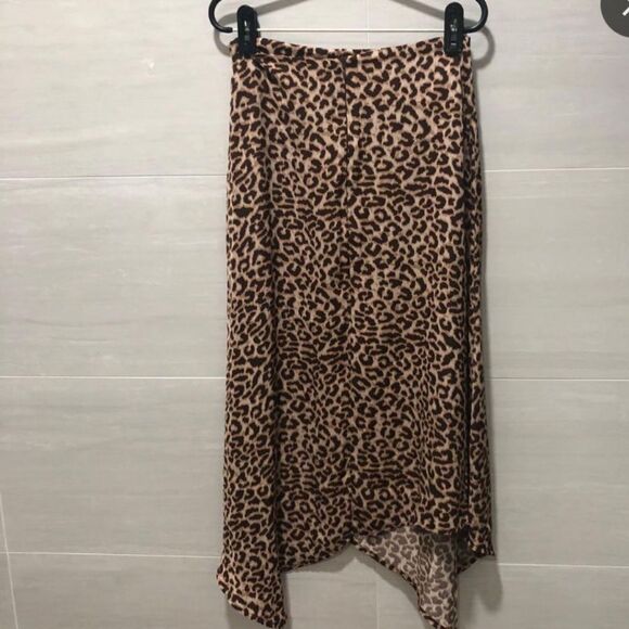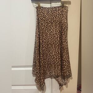 COTTON ON Brown Leopard Animal Print Asymmetrical Hem Midi Skirt