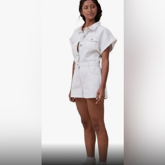 Denim and comfortable, this playsuit is a medium weight, denim romper with short sleeves and a belt loop for the perfect fit.