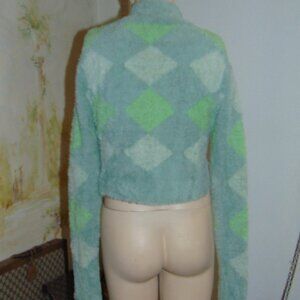 COTTON ON Super Fuzzy Soft Furry Sweater Cropped Argyle Preppy Light Academia SP