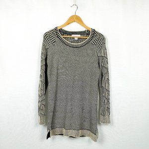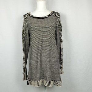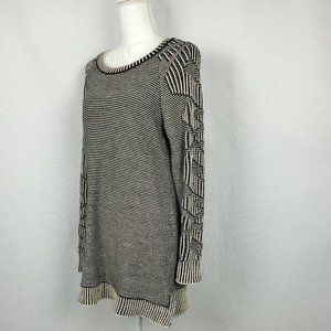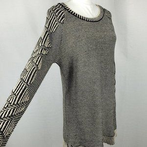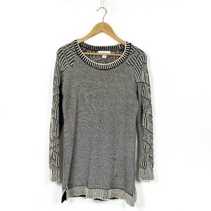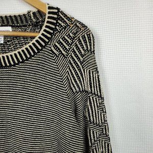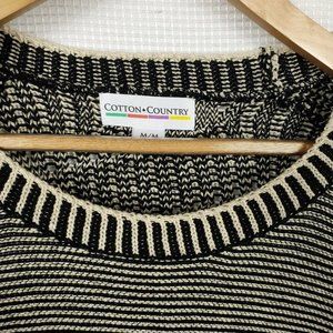 Elegant and stylish, this black and white striped sweater is perfect for any occasion. Its unique pattern adds a touch of sophistication to your wardrobe.