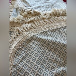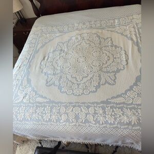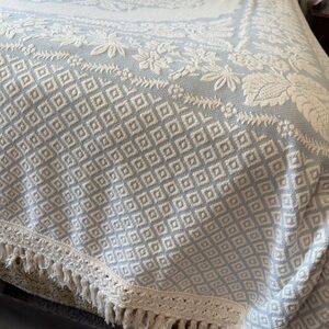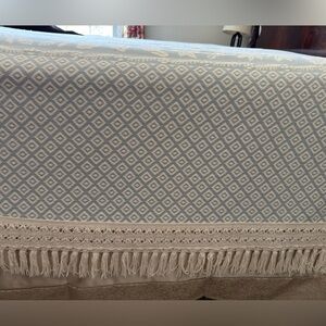 COTTON WOVEN KING BLUE CREAM 6” FRINGE MEDALLION BEDSPREAD 115x115”
