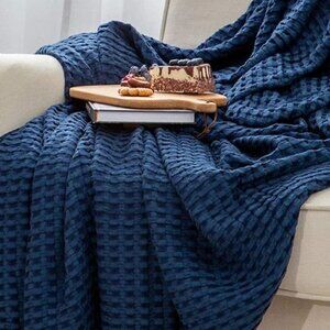 NWT Cotton Waffle Weave Bamboo Blanket King Size Navy Soft Lightweight Bed Blanket NWT