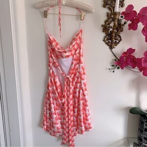 COTTON CANDY Asymmetrical Tie Back Slip Dress Pink White Medium