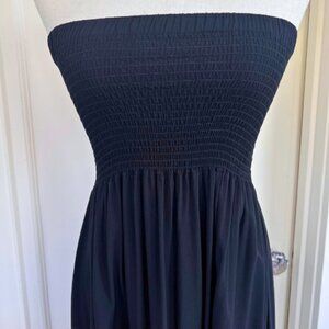 COTTON:ON Black Smocked Strapless High Low Midi Dress Size M