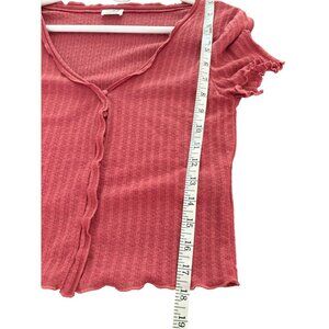 COTTON:ON Button Front Gauzey Ribbed Short Sleeve Cardi Tee in Red Size Small