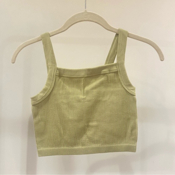 Light green ribbed crop top. Thick, stretchy material. Perfect for casual wear.