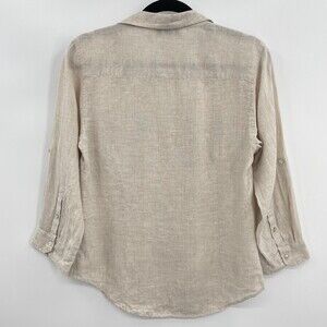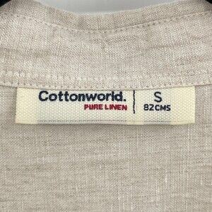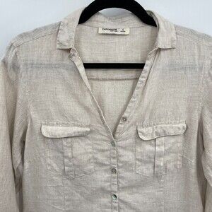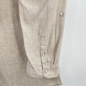 COTTONWORLD 100% Pure Linen Beige Long Sleeve Half Button Down Shirt Size S