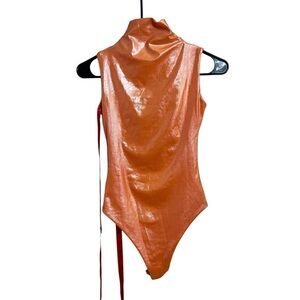 COUCOO SAA Orange High Neck Sleeveless Bodysuit Shiny Shapewear Sexy Size Small