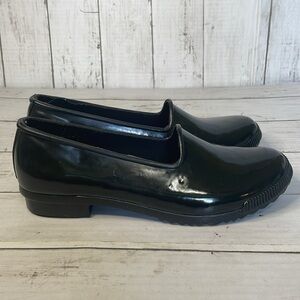 COUGAR Black Waterproof Slip On Rubber Rain Shoes with Removable Hot Pink Insole