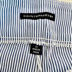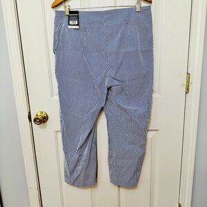 COUNTERPARTS BLUE AND WHITE STRIPED MID RISE CROPPED PANTS