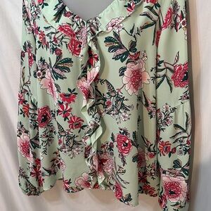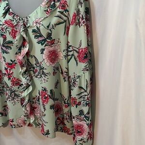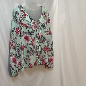 COUNTERPARTS Floral Mint Green Pink Women's Top Size XL