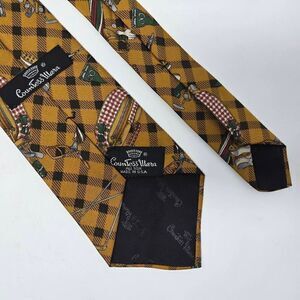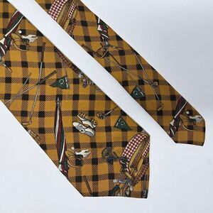 COUNTESS MARA SILK TIE GOLD BLACK GREEN PLAID GOLF THEME 3.75" X 56"