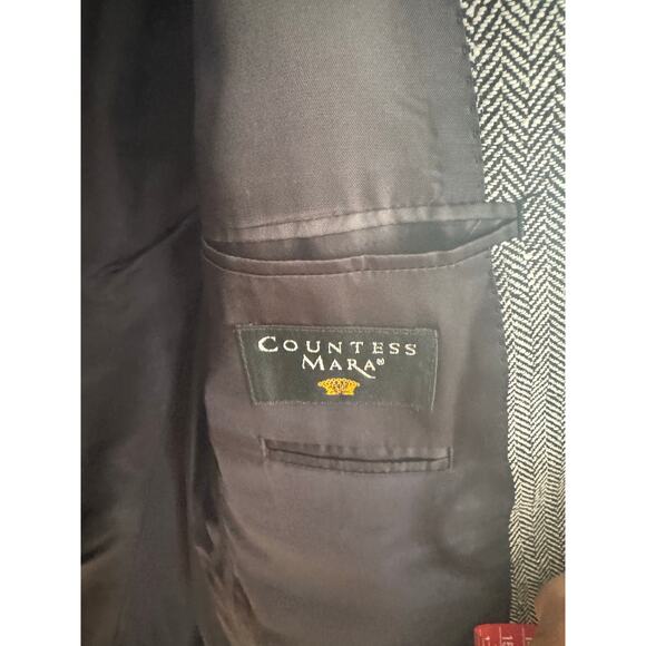 COUNTESS MARA Vintage Mens Blazer Jacket Suit Coat Black Tweed 42 Regular