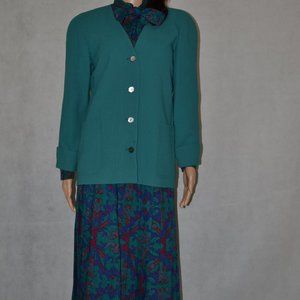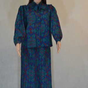 COUNTRY CASUALS PURE NEW WOOL GREEN , PURPLE , RED SKIRT SET SIZE 10 / 12/ 34