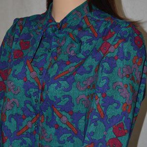 BLOUSE - Seven Button Front Long Sleeve and a ( LAVALLIERE ) Size 34 " Bust / Pit to Pit 21 " / 23 " Sleeves