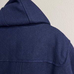 COUNTRY ROAD Hooded Cape Girls 5 Navy Blue Wool Winter Coat Faux Fur Pom Ties