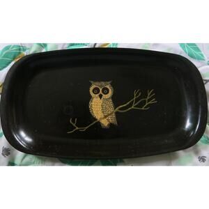 COUROC Monterey California Vintage Owl Tray Plate Black Inlaid Barware 1960s