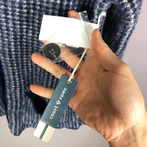 COURT & ROWE Women's Navy Houndstooth Eyelash Knit Cardigan Sweater Size XS