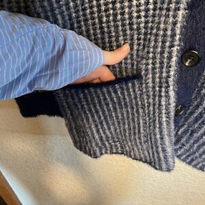 COURT & ROWE-Houndstooth Eyelash Knit Cardigan in Navy Size Small