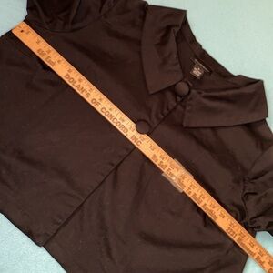 COURTENAY Y2K jacket blouse black, Peter Pan collar, 2 large fabric covered buttons, short wide loose sleeves, pleated in back. Soft flowy loose fitting uniqueness. Versatile and timeless.