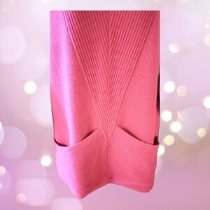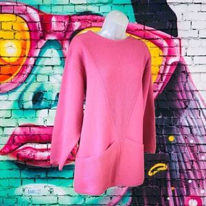 COURTNEY RHODES SWEATER TUNIC FUSCHIA PINK W/Pockets WOOL BLEND LARGE