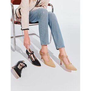COUTGO Womens Mary Jane High Heels T Strap Closed Pointed Toe Pumps Buckle Work