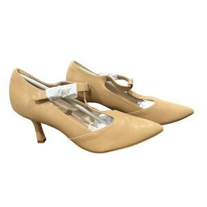 COUTGO Womens Mary Jane High Heels T Strap Closed Pointed Toe Pumps Buckle Work Office Khaki Dress Shoes 8