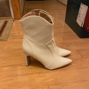COUTGO Womens Western Ankle Boots High Heels Slim Block Size 10