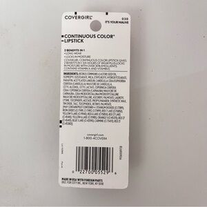 COVERGIRL Continuous Color Lipstick, 30 It's Your Mauve, 0.13 oz NEW