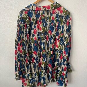 COVINGTON DRESSY FLORAL SHIRT TOP BLOUSE Pleated Flutter Sleeve Sz 16-18W Plus