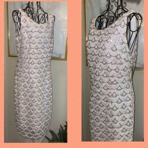COVINGTON "MISSY SOCIAL DRESS"SEQUINS & EMBROIDERY ON MESH~PINK/WHITE~10