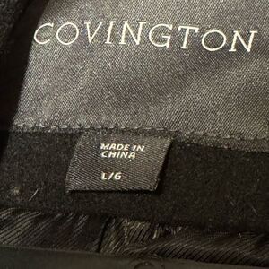 COVINGTON Men's Large Black Pea Coat Wool Coat Wool Blend Hidden buttons