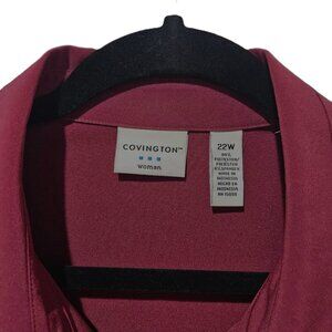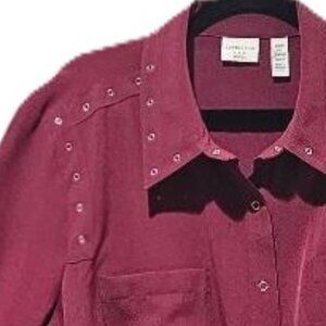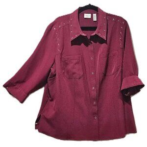COVINGTON SILVER GROMMET BURGUNDY LONG SLEEVE BUTTON SNAP DOWN SHIRT TOP 22W