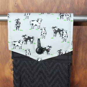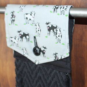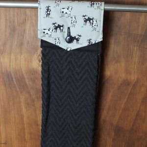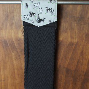 COW GRAY & BLACK PRINT HANDMADE HANGING KITCHEN HAND TOWEL BLACK COTTON TOWEL