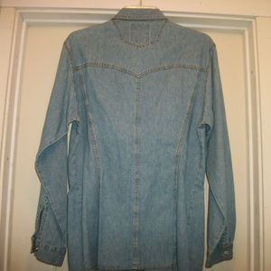 COWGIRL OLD WEST YELLOWSTONE DENIM & LEATHER LIKE DETAILS SHIRT L