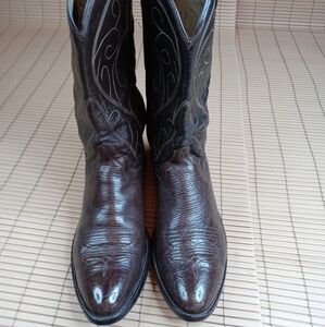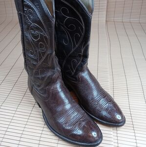 COWTOWN Cowboy Boots 9 D Mens Brown BULLHIDE Leath