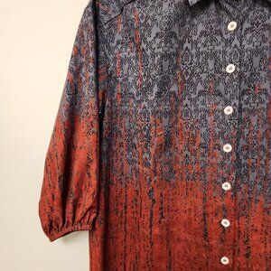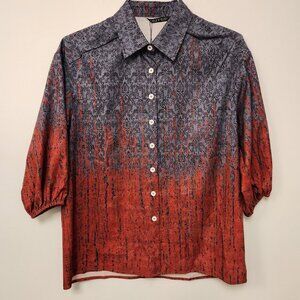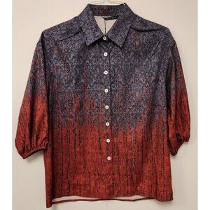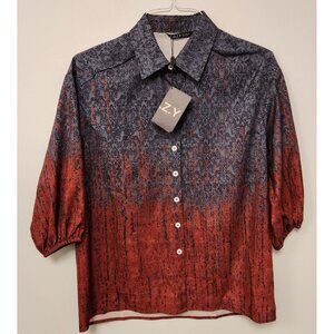 COZY 3/4 Wide Sleeve Button Up Blouse Boho Blue Orange Womens Small NEW NWT