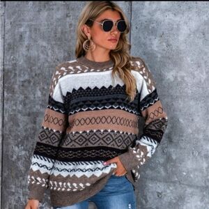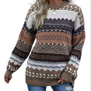 FAIR ISLE FISHERMAN STYLE UGLY DAD GRANDPA COZY SOFT KNIT SWEATER