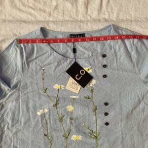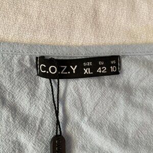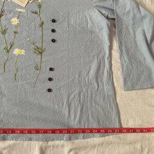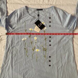 C.O.Z.Y Womens Light Blue Long Sleeve Top With Daisy Print & Button Details - Si