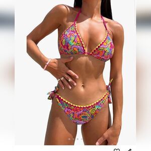 COZYEASE Women's Bikini Sets 2 Piece Halter Triangle Allover Print Swimsuit Set
